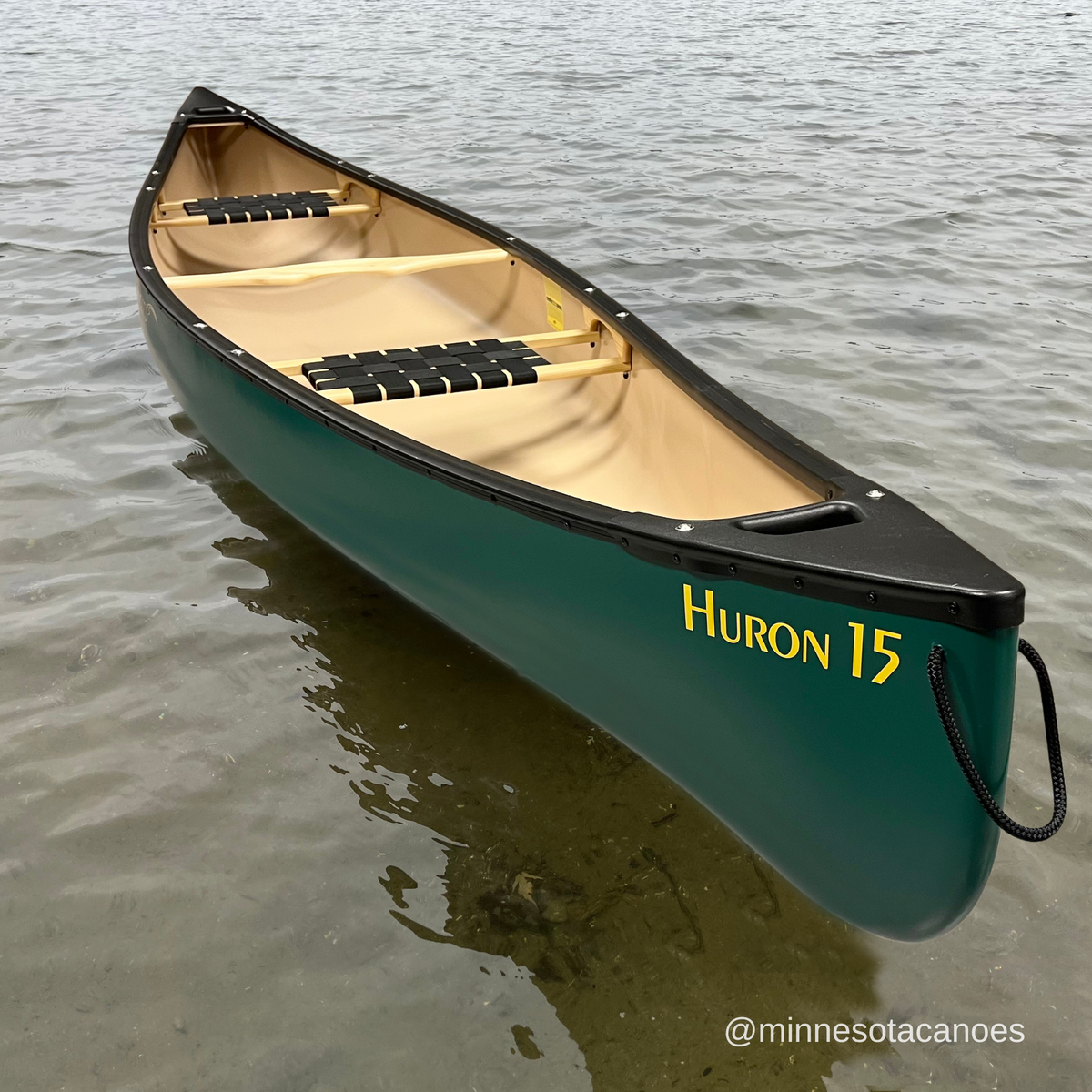 The Huron 15 is ideal for cottagers and recreational canoeists who want a rugged canoe for paddling on calm bodies of water and small rivers but who don’t need the depth and capacity of the Prospecteur 15. The Huron 15 is pulled from the same mold as the Prospecteur 15 but we trim it down to 12.5”, as opposed to 14.5”. The lower profile reduces the weight and makes it easy to paddle in breezy conditions as either a solo or tandem.