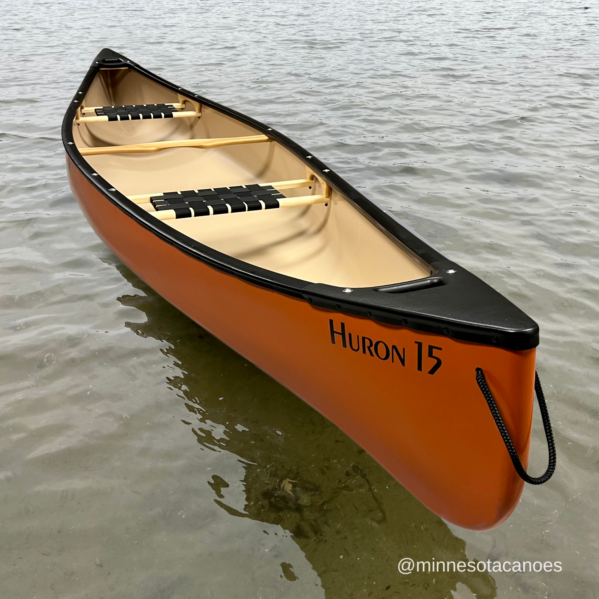 The Huron 15 is ideal for cottagers and recreational canoeists who want a rugged canoe for paddling on calm bodies of water and small rivers but who don’t need the depth and capacity of the Prospecteur 15. The Huron 15 is pulled from the same mold as the Prospecteur 15 but we trim it down to 12.5”, as opposed to 14.5”. The lower profile reduces the weight and makes it easy to paddle in breezy conditions as either a solo or tandem.
