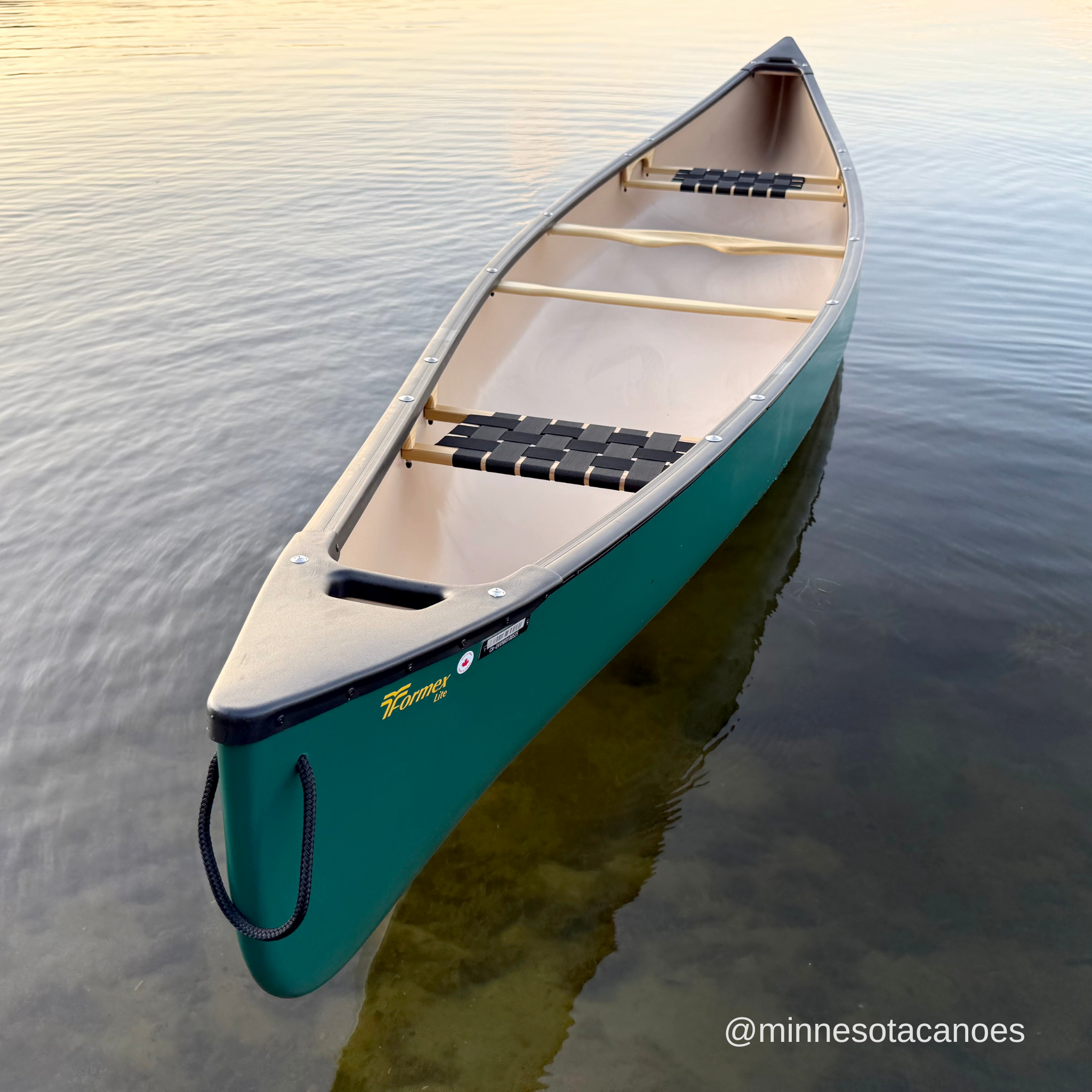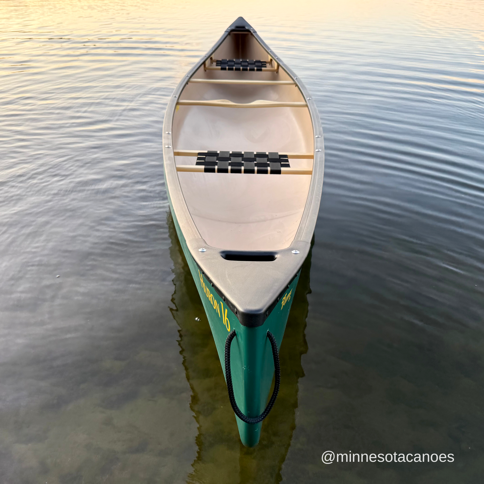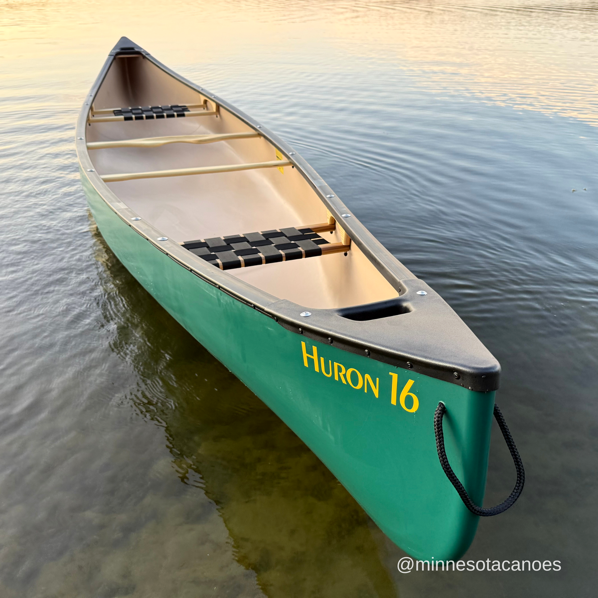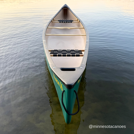 The Huron 16 is ideal for cottagers and recreational canoeists who want a rugged canoe for paddling on calm bodies of water and small rivers but who don’t need the depth and capacity of the Prospecteur 16. The Huron 16 is pulled from the same mold as the Prospecteur 16 but we trim it down to 12.5”, as opposed to 14.5”. The lower profile reduces the weight and makes it easy to paddle in breezy conditions as either a solo or tandem.